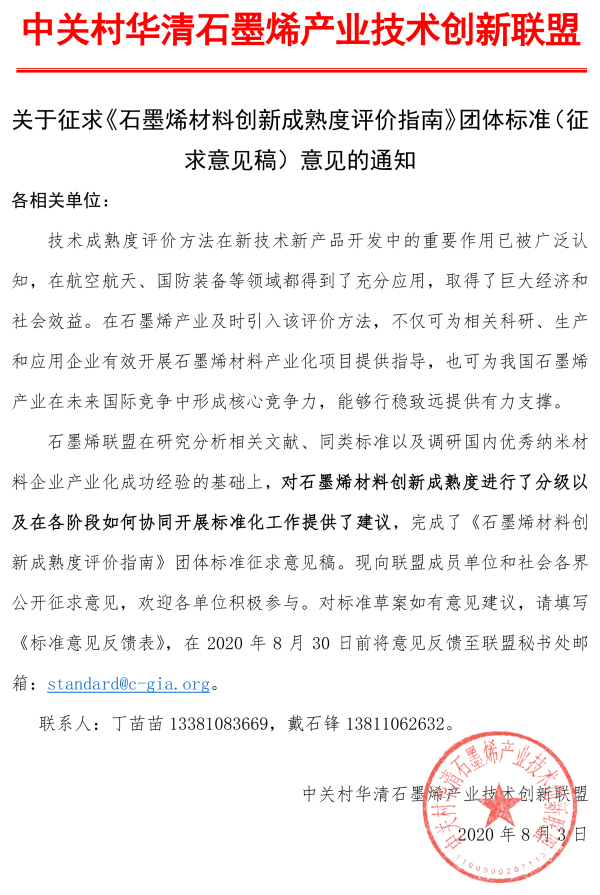 《石墨烯材料创新成熟度评价指南》团体标准(征求意见稿)...