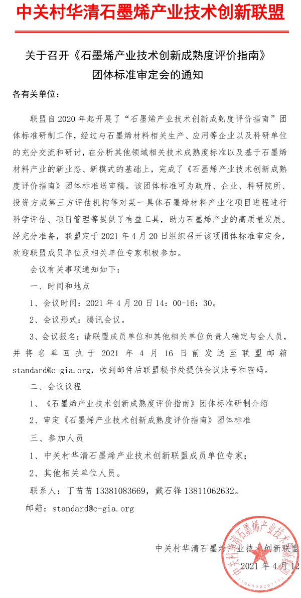 《石墨烯产业技术创新成熟度评价指南》 团体标准审定会