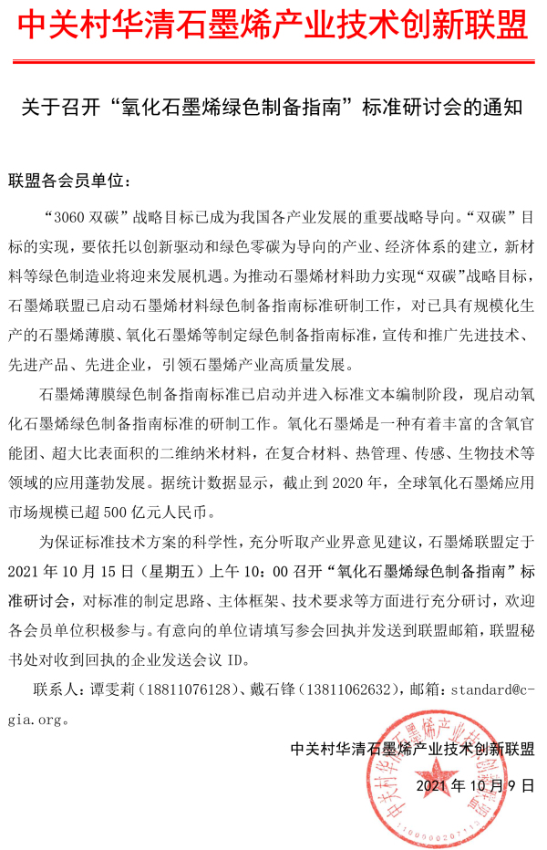 关于召开“氧化石墨烯绿色制备指南”标准研讨会的通知